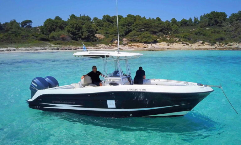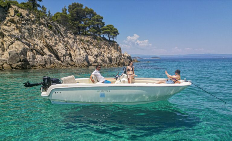 Explore Halkidiki’s hidden gems with our tailored mini-cruises. Experience the serene beauty of Diaporos Island, the mesmerizing Blue Lagoon, and Sithonia’s breathtaking coastline. Opt for our easy-to-navigate small boats, perfect for groups of up to 8, no boating license required. Seasoned sailors can indulge in our high-end speedboats, showcasing Italian design and performance.