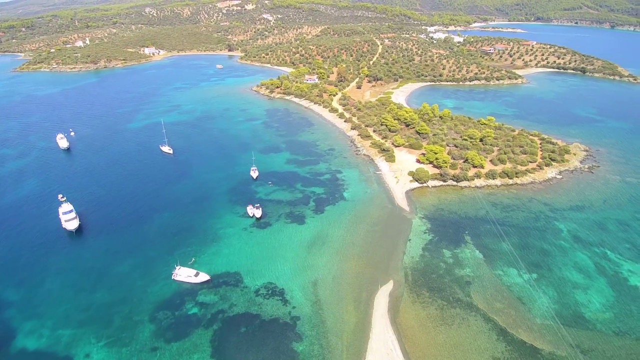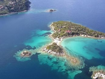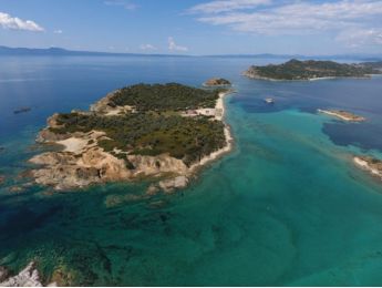 Diaporos Island is part of the Halkidiki region in northern Greece. It is situated in the bay of Vourvourou, which is renowned for its crystal-clear waters and natural beauty.