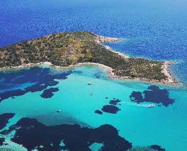Departing from Nikiti, our Blue Waters Private Cruise follows the southern coastline of Sithonia, revealing crystal-clear waters and pristine swimming spots at Koviou, Kalogria, Spathies, the secluded bays of Porto Carras, and the distinctive Kelyfos Island—also known as Turtle Island.